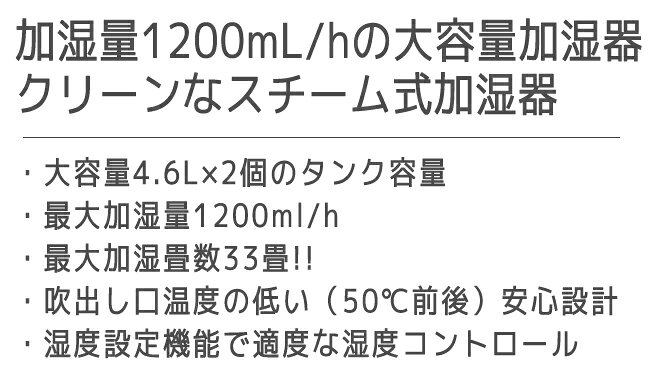 infomation■ 商品説明・加湿量1200mL/hの大容量加湿器。